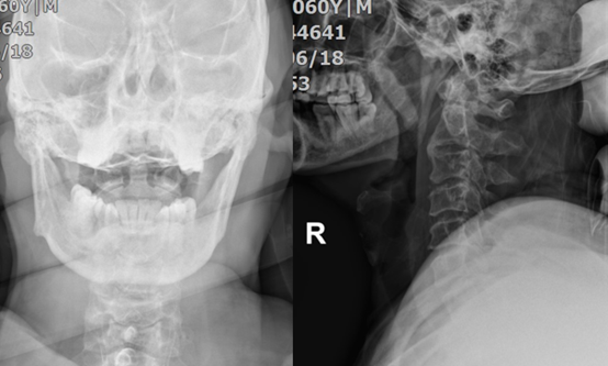 患者,60岁,明确的外伤史。以“颈部肿痛、活动受限伴四肢麻木、无力7小时”为主诉入院。自受伤以来神清,纳食正常,导尿管在位通畅,大便未解。
