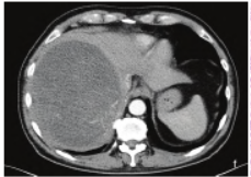 患者男,59岁,因体质量减轻1个月,外院发现肝脏占位(考虑肝囊腺瘤)来院就诊。体格检查:皮肤巩膜无黄染,腹部外形正常,全腹软,无