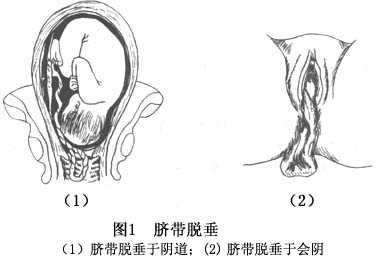 (2)脐带脱垂:一经诊断应立即使产妇取臀高位或胸膝卧位,如脐带脱垂程度重或胎儿窘迫情况严重,则用内诊手上推胎头至骨盆入口以上,以减轻先露部对脐带的压迫。脱出外阴的脐带暂用无菌纱布覆盖,尽可能少触动,并给以胎儿窘迫的一切治疗,同时做好进一步处理准备。
