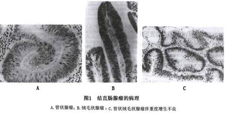 a.管状腺瘤:又称腺瘤性息肉或息肉样腺瘤,为半球形或椭圆形,表面光滑或呈分叶状,色粉红或灰红,表面可有充血、水肿和糜烂。息肉直径小自1cm,大至5cm,在临床发现的大多在1cm以上,大者多有蒂,少数(15%)广蒂或无蒂(图1A)。