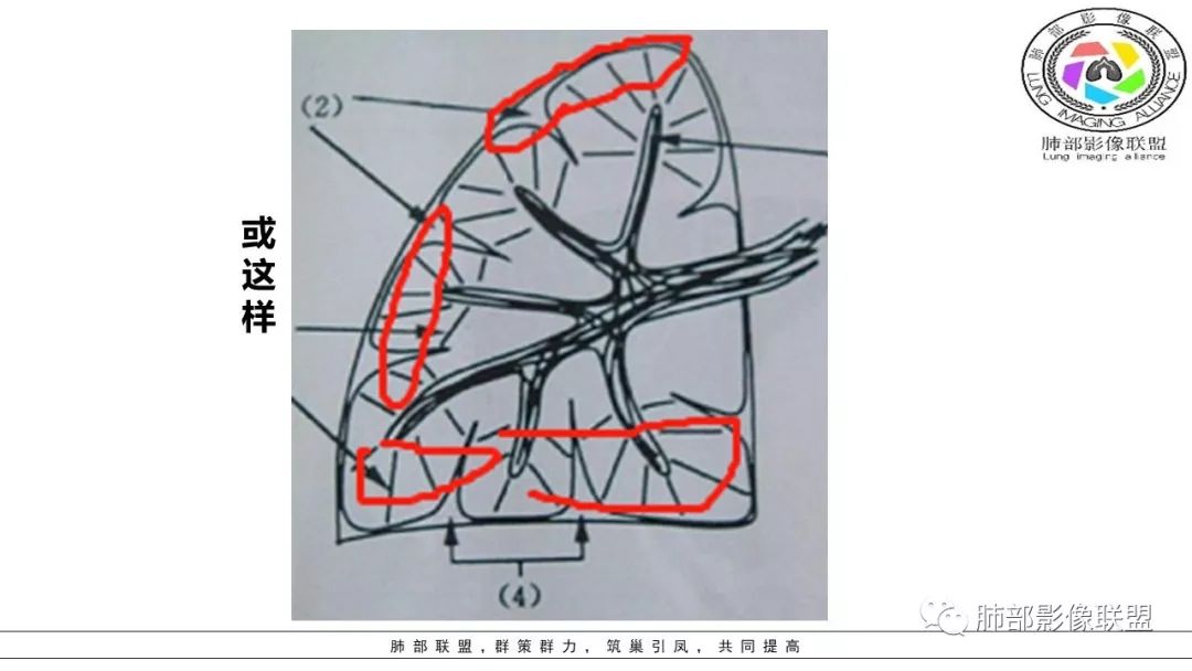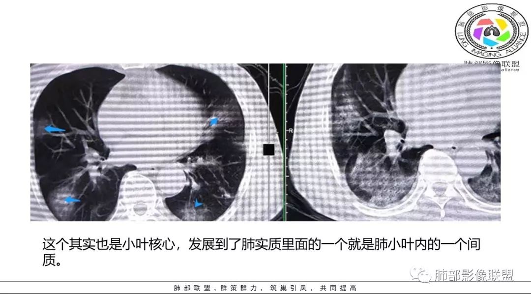 4、病毒性肺炎的主战场——小叶核心区域、胸膜下(肺实质区域的间质部分),大气道偶尔受累。 医学百科网 | YxBaike.Com