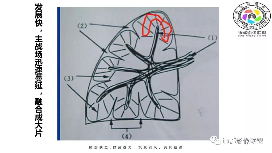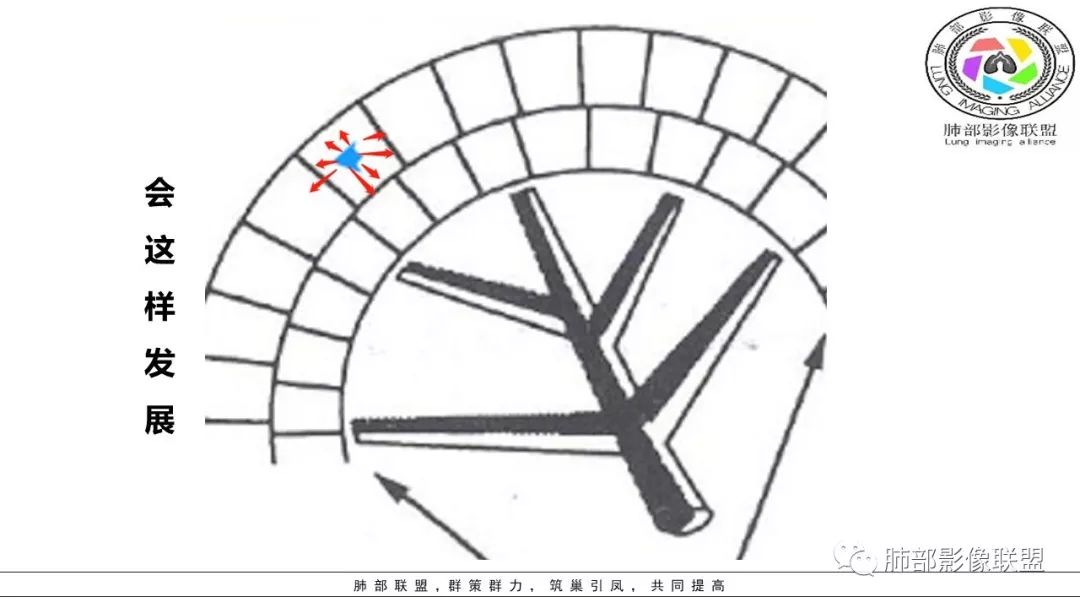 3、在过渡区朝外、朝下发展,或者直接进入肺泡腔,沿肺泡壁等间质