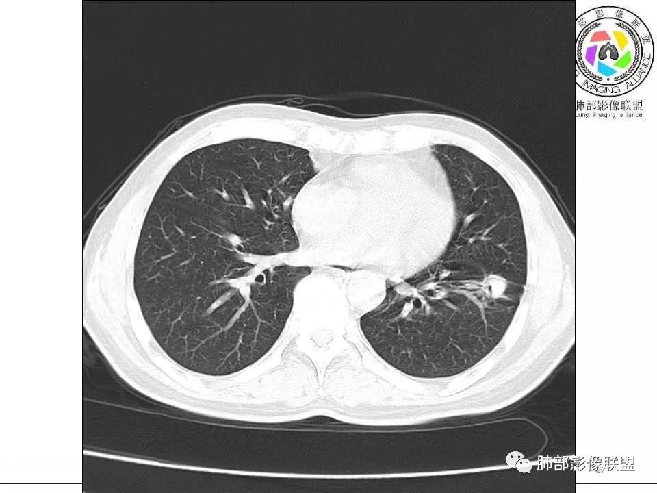 双肺弥漫小树丫,树丫边界清楚,右肺磨玻璃结节,病变包绕血管束,血管走形自然(考虑微浸润腺癌)。左肺下叶多发实性结节,结节以支气管血管束周围分布,大小均一,部分结节伴有空洞,洞壁内侧可见引流支气管及支气管壁增厚,洞壁外侧可见钙化,随访两个月有明显吸收,部分有残留小结节。中老年男性,无实验室检查。考虑:左肺炎性肉芽肿,结核,隐球,组织胞浆菌,NTM,建议完善实验室检查及支气管镜检查。 医学百科网 | YxBaike.Com