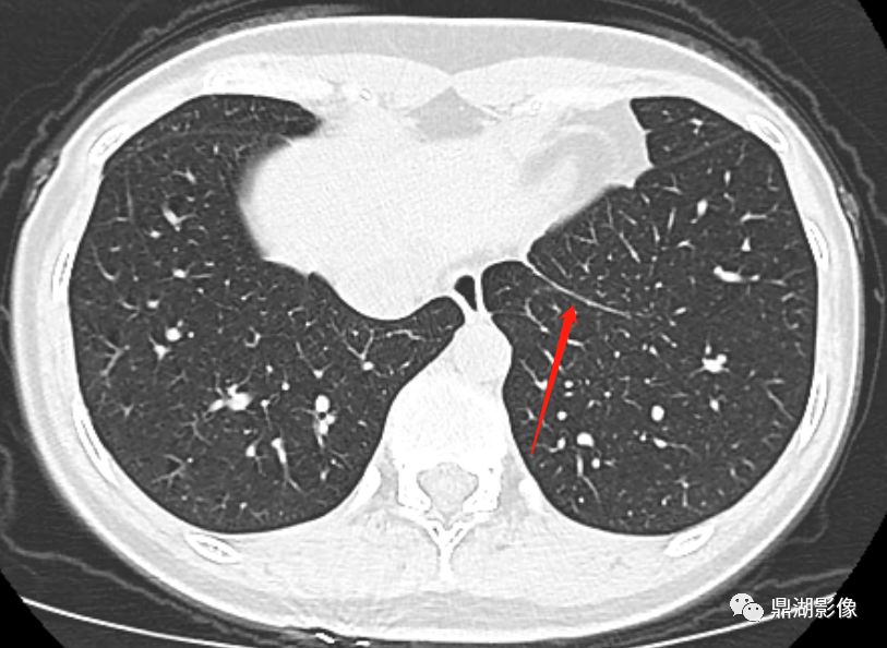 CT表现:沿肺门的下缘(肺静脉为肺门的最下端)延续的线样高密度,边缘光滑。 医学百科网 | YxBaike.Com