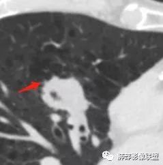 晨读:几个征象的认定,1.是空洞还是空腔?未见明确与支气管相通,空洞/空腔形态不规则,内部光滑;2. 有血管穿行?见血管影穿过无明显破坏;3.有没有强化?没给出平扫,猜测有轻度强化、较均匀;3.分叶、毛刺均有;总体判断:MT可能大,其内为空腔而非空洞、加之有血管穿行,考虑为生长速度快包绕所致,不首先考虑鳞癌,以小细胞癌或腺癌可能。 医学百科网 | YxBaike.Com