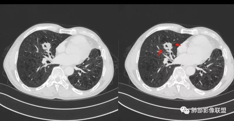 晨读病例:老年男性,咳嗽痰中带血俩月,肺气肿背景,右肺中叶不规则结节影,有分叶,内有空洞还是扩张支气管?不均匀轻度强化,内有血管进入。考虑恶性肿瘤,鳞癌?