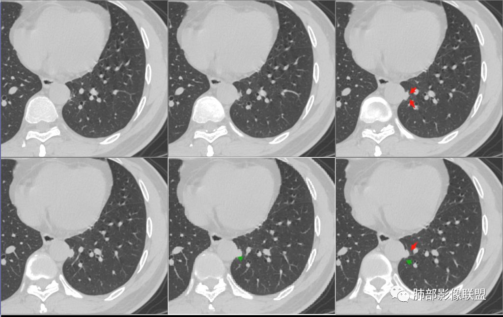 病例二,主动脉旁小结节,和血管相连,明早强化,考虑血管性,鉴别炎性结节