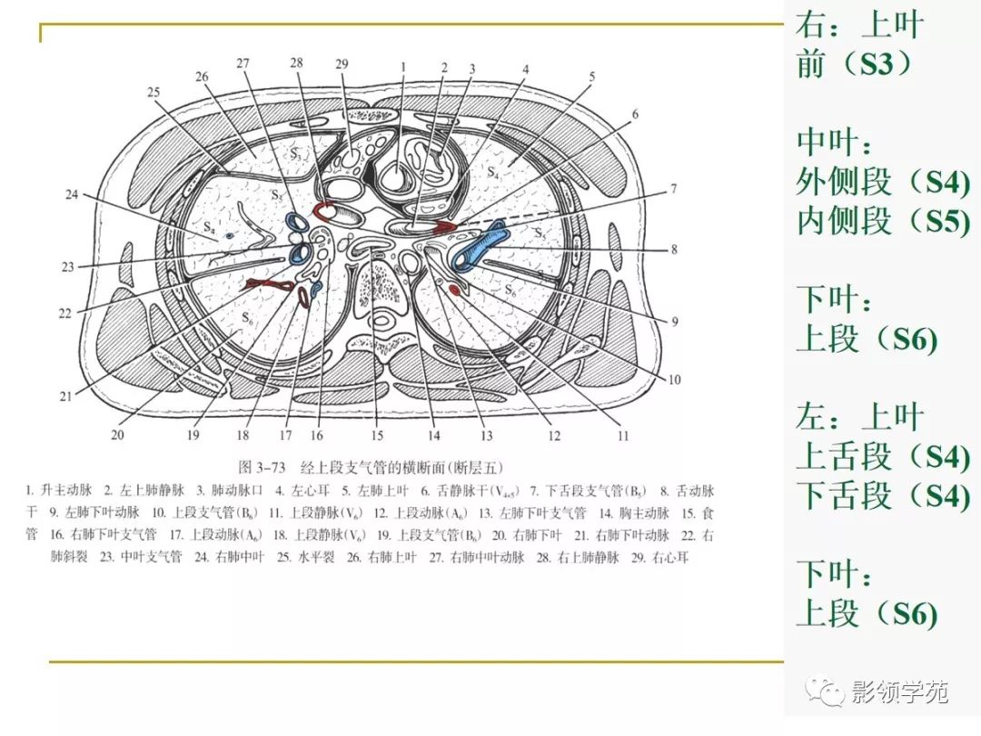 V6的段间支用以区分上段与各底段、各底段静脉的高位属支为段间支,可以分出各底段;各底段静脉下位层面,各底段支气管及伴行动脉之间的“无血管区”作为分段的标志 医学百科网 | YxBaike.Com