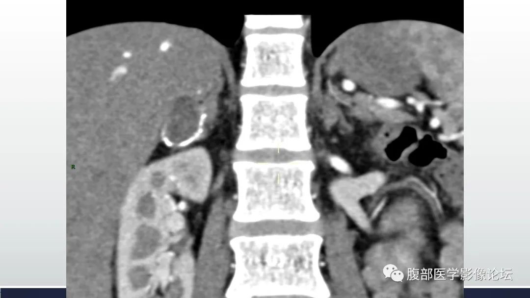 李广明:右侧肾上腺外侧支结节,环状钙化,其内以囊性为主,尚可见稍高密度灶,增强强化不明显,左侧肾上腺稍增生。考虑1囊肿类,病灶环状钙化,需要优先考虑囊肿病变出血所致,a血肿机化及囊变,一般有外伤病史。b支气管囊肿,影像表现亦符合。2炎症,结核,肾上腺结核一般伴有爱迪生氏综合症,该患者临床没有提示。3肿瘤神经源性,强化偏弱,此种改变不典型。综合考虑肾上腺良性病变,囊肿类首先考虑,陈旧性血肿或支气管囊肿。建议核磁检查,除外肿瘤囊变。 医学百科网 | YxBaike.Com