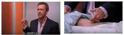 镜头:豪斯团队成员蔡斯为患者取栓子,仔细看可以发现采用的是Swan Ganz漂浮导管吸出气体。另外,非常值得注意的是在取栓子的过程中患者有主诉腿部感到虚弱无力,但蔡斯以为是局部麻醉镇静的后果。 医学百科网 | YxBaike.Com