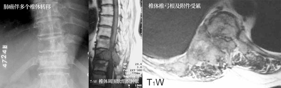 脊柱:膨胀明显,累及椎体后部或整个椎体,包括相邻的软组织
