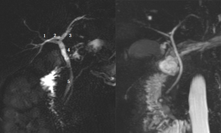 磁共振胰胆管水成像 (magnetic resonance cholangiopancreatography,MRCP) 属于磁共振功能成像的一种,采用无创的方法对胆系及胰管进行成像,它利用 MR 重 T2 加权成像将含液体的胰管和胆管清晰显示,提供完整的胰胆管影像,通过二维及三维成像,能够从多个角度以及方位对胆管以及胆道形态进行全面的展示。近些年胆系疾病的发病率逐年上升,尤其肝叶切除手术、PTC 手术时,这就要求对胆道系统进行全面评估,避免不必要的损伤,而 MRCP 技术可以较为真实、客观的反应胆管走行、形态情况。