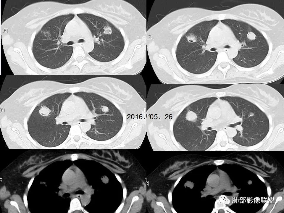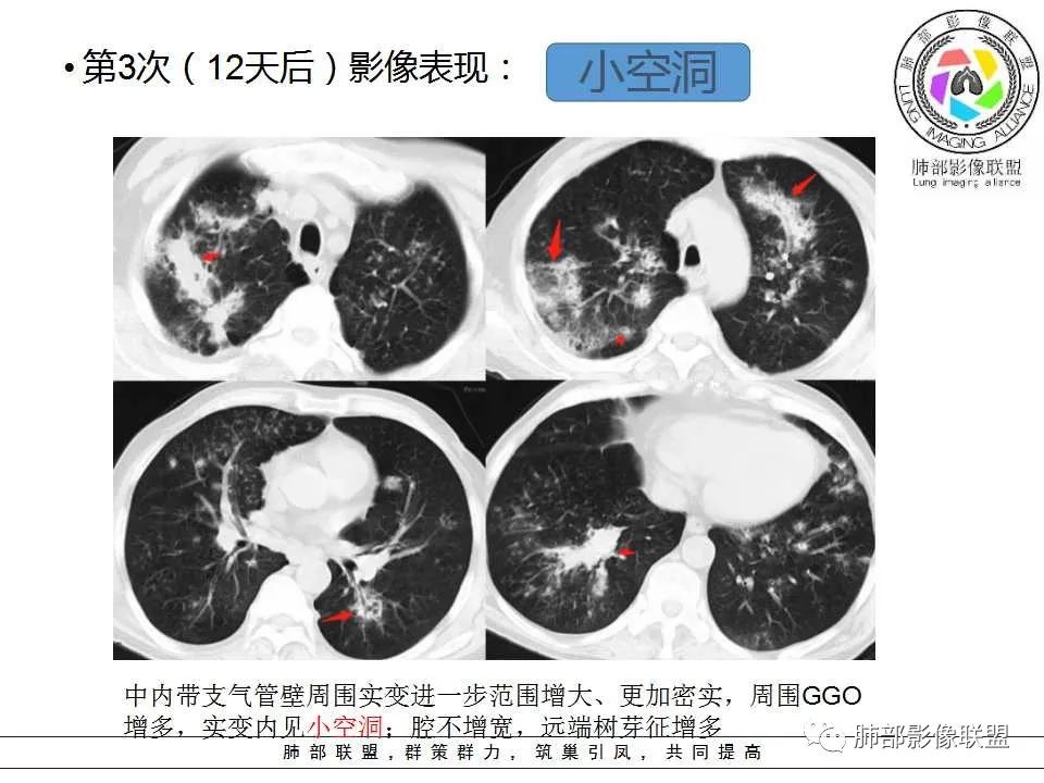 4.多发结节影短期内易出现空洞,注意时间节点,2周左右比较常见。