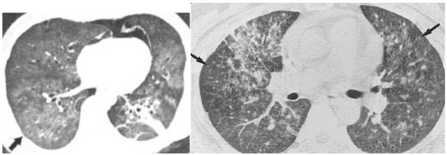 巨细胞病毒CMV:多发微结节+磨玻璃影+实变+小叶间隔增厚+纤维化+空气潴留 医学百科网 | YxBaike.Com