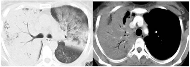 金葡菌肺炎:树芽征+磨玻璃影+实变+空洞+纤维化+脓胸+液气囊+毒血症 医学百科网 | YxBaike.Com