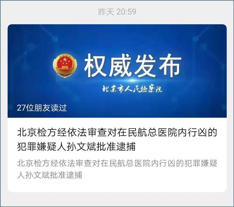 《基本医疗卫生与健康促进法》于2019年12月28日正式审议通过,巧合的是,新法审议通过的前一天,也就是12月27日,震惊全国的“民航总医院杀医案”凶手孙文斌,被北京检方以涉嫌故意杀人罪批准逮捕。