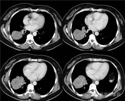 鉴别方面,主要与周围型肺癌相鉴别。周围型肺癌有明显的肿瘤形态学特征,像毛刺征、凹脐征、兔耳征等。另外周围型肺癌一般不会出现孤立的大肿块,出现淋巴结转移及肺内转移均较早。此外,本病尚需与肺母细胞瘤、炎性肌纤维母细胞瘤鉴别,这三者都有肺内大肿块,边缘清晰、有分叶、增强后都有强化,CT鉴别困难。