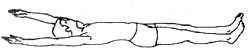 5.仰卧起坐 患者仰卧,双臂上伸平放垫上,然后仰卧起坐,躯体屈曲,双臂前伸,双手触及趾尖,然后再慢慢双臂上举回至仰卧位(图5)。