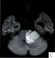 4. 鉴别诊断:本例需要鉴别的占位:①蛛网膜囊肿:发生在桥小脑角区较少见,单凭信号难以区别二者,FLAIR、DWI对鉴别有较大帮助,表皮样囊肿由于病灶 内角化物和蛋白质不能完全被抑制,水分子的运动受限制,则FLAIR表现为稍高于脑脊液信号,DWI表现为高信号;②听神经瘤囊变:多伴有听神经增粗,增 强后囊壁可见强化,常有内听道扩大;③脑膜瘤完全囊变:较少见,“脑膜尾”征较具有特征性。