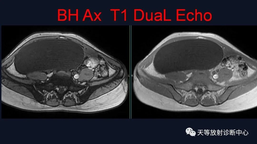 1、浆液性囊腺瘤 :浆液性囊性肿瘤较常见,浆液性肿瘤好发的平均年龄为40岁以上,表现为纯囊性,可呈多囊改变,T1WI呈低信号、T2WI呈高信号、DWI呈低信号,增强后无实性成分强化。