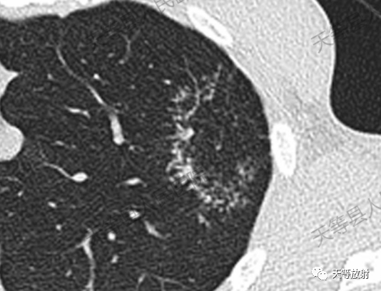 结核病形成“反晕征”的病理基础是疏密程度不同的小结节为干酪样肉芽组织,环壁结节密集,结节多为小叶中心结节或小叶间隔结节, 提示淋巴管或支气管播散, 可与其他病理形式肺结核同时存在,即可出现空洞、干酪性肺实变、纤维化钙化等。