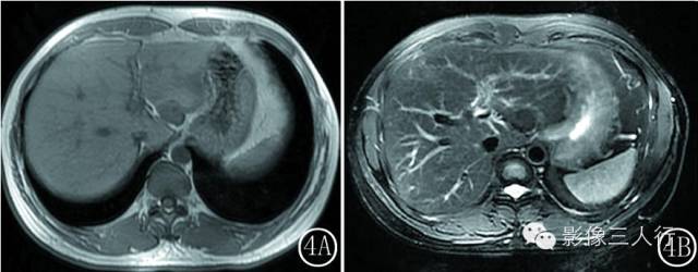 图 4 MRI 全瘤强化型 IPL 。 图 4A T 1WI ,病灶呈均匀低信号 。 图 4B T 2WI ,病灶呈低信号 。 图 4C 门脉期 ,病灶内见分隔状强化 。 图 4D延迟期 ,病灶持续强化 ,呈全瘤强化 ,中心见少许低信号不强化区