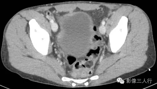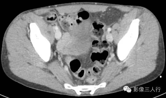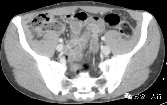 延盲肠层面向下延续能看到腹股沟管走行区可见到管状的阑尾影像,腔内可见气体密度,阑尾壁无增粗,周围无明显渗出。