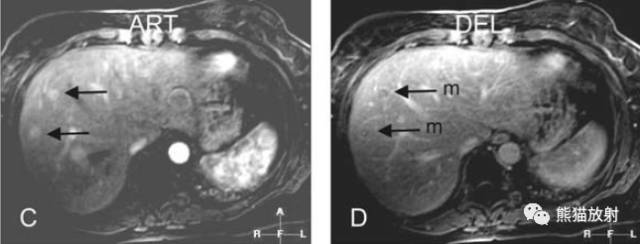 ART:动脉期,病灶明显不均质强化;
