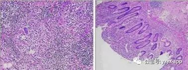 【讨论】 克罗恩病(Crohn’s disease, Crohn病,CD)亦称非特异性局限性肠炎,是一种胃肠道慢性炎性肉芽肿性疾病。病变多见于末段回肠和邻近结肠,但全消化道均可受累,呈节段性或跳跃性分布。临床上以腹痛、腹泻、腹块、瘘管形成和肠梗阻为特点,可伴有其他肠外表现。本病有终生复发倾向,病情迁延不愈。病理上特点为:(1)病变呈节段性或跳跃性;(2)早期鹅口疮样溃疡,随后溃疡增大,形成纵形和裂隙样溃疡,将粘膜分割呈鹅卵石样外观;(3)病变累及肠壁全层,肠壁增厚变硬,肠腔狭窄。