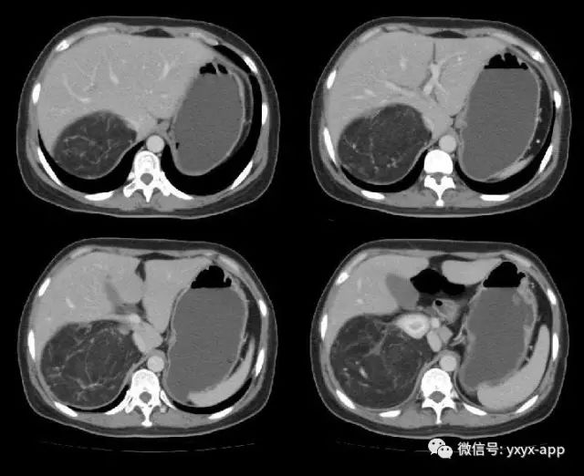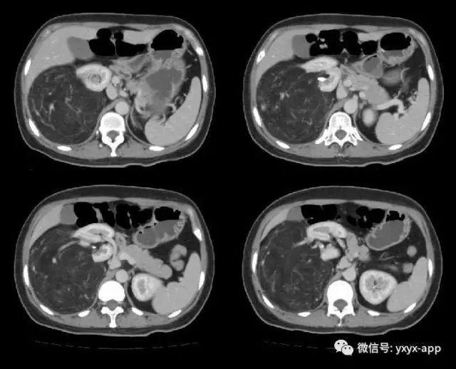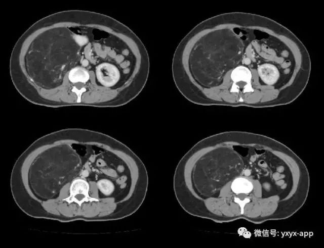 肚肚丫头:右肾中极肾皮质欠完整,呈喇叭口样改变,并可见突出肾脏轮廓的巨大脂肪密度影,其内信号欠均匀,病变边界清楚,周围脏器未见异常密度影及受侵征象,增强扫描病变呈欠均匀较显著强化,腹膜后未见肿大淋巴结。考虑来源于肾脏的含脂肿瘤占位病变,右肾巨大血管平滑肌脂肪瘤可能。鉴别诊断:1. 肾周脂肪肉瘤;2. 腹膜后脂肪瘤/高分化脂肪肉瘤;3. 肾上腺髓质脂肪瘤; 4. 腹膜后畸胎瘤。