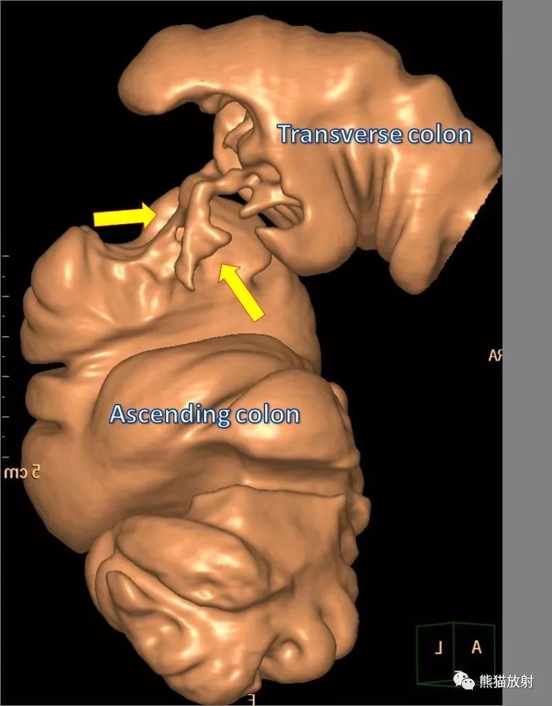 由于肠壁环形增厚导致相应肠管缩窄,通常是结肠癌。