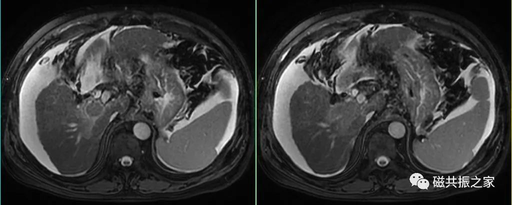 对于呼吸不均,采用呼吸触发获得的图像质量较差时,可采用屏气的超长回波链-T2WI序列或单次激发T2WI序列或稳态自由进动序列替代扫描,但应注意替代序列对其病变的敏感性和特异性。