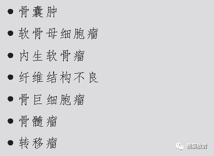 骨破坏的形式以及病变和周围骨之间形成的边界常可特征性地指向特定的病变,并且有助于进行鉴别诊断。