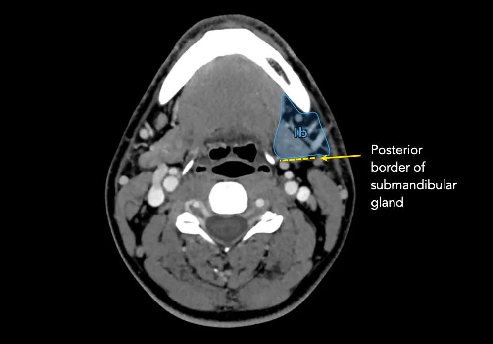 IIa和IIb中的淋巴结具有来自鼻和口腔、鼻咽、口咽、下咽、喉和主要唾液腺的癌转移的风险。