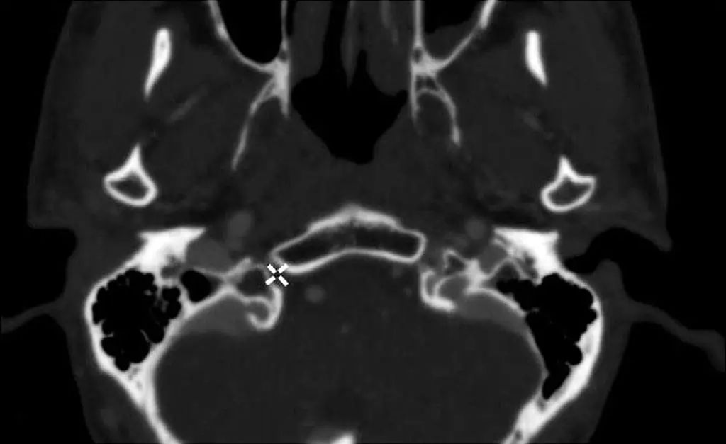 图2-18 舌下神经管(CT骨窗,白色+字)