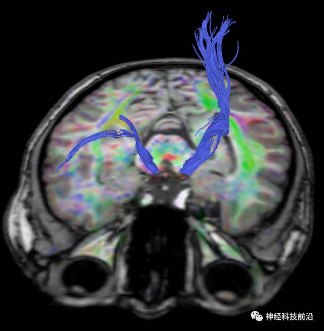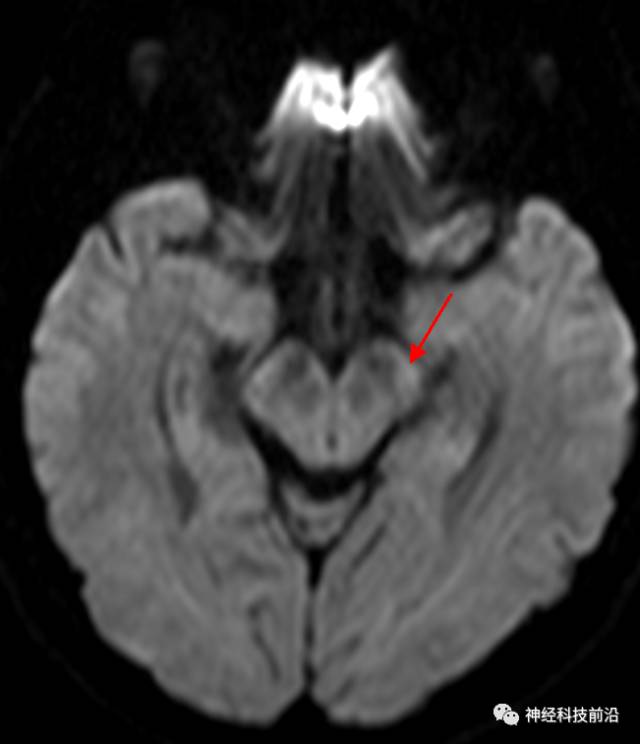 脑干内高信号为一近环形纤维束,其作用尚待研究。