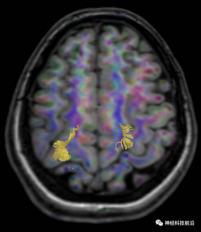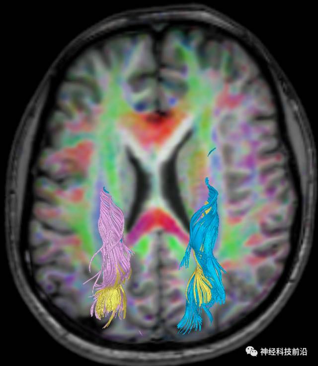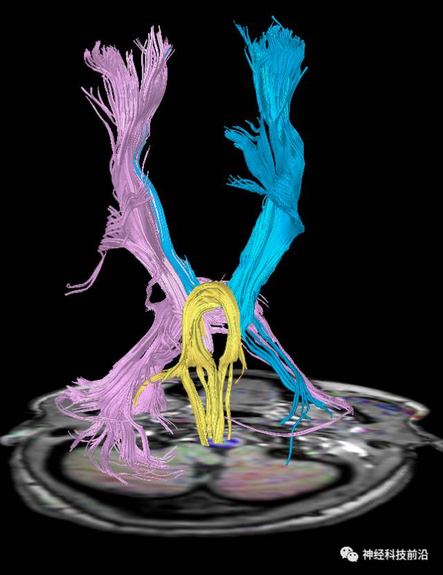 皮质脑桥束与脑干高信号(黄色)纤维束