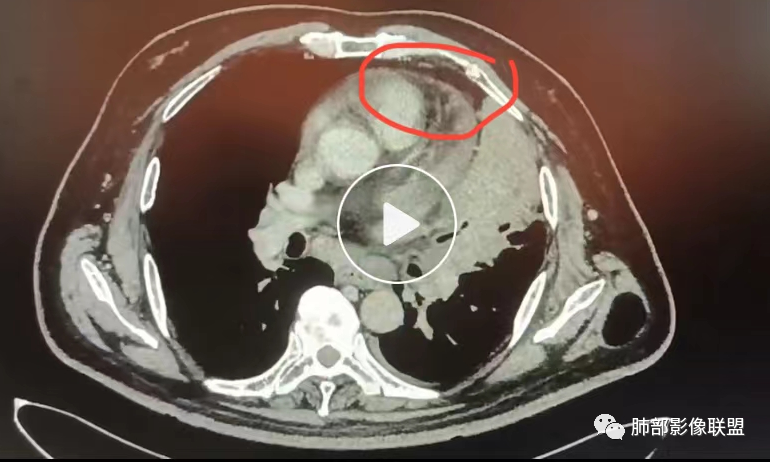 AAA张春雨:肺部联盟病例:纵隔向左移位,提示慢性疾病,心包积液,左肺上叶内侧段不张,纵隔淋巴结肿大但不是肿瘤转移的填塞式的大淋巴结,考虑支气管内膜结核,结核性心包炎。