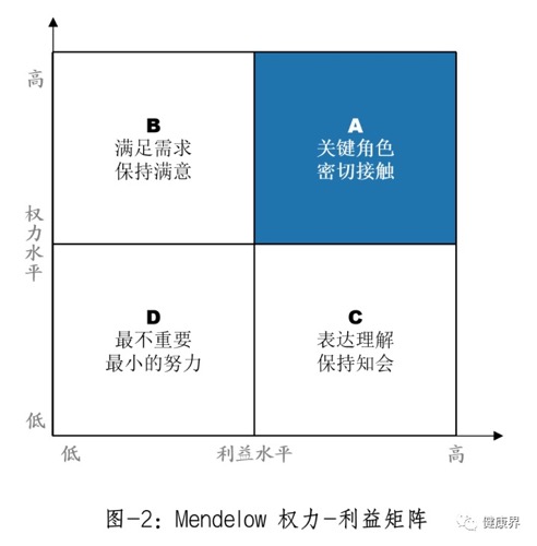我们利用权力-利益矩阵(Mendelow矩阵)对业务变革的主要责任主体进行分析:当责任主体权力最大、利益水平最高时,改革推进才顺利(见图2)。