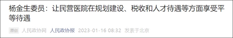 近日,在北京市政协十四届一次会议期间,北京市政协委员、中国中医科学院中医基础理论研究所所长杨金生建议:让民营医院在规划建设、税收和人才待遇等方面享受与公立医疗机构同等的待遇。