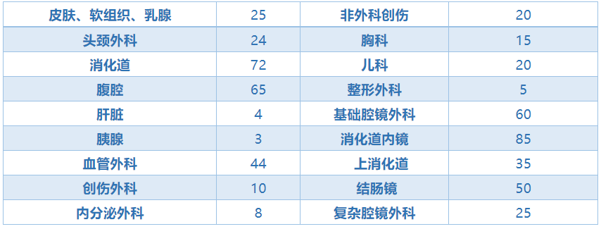 除了总手术量的要求,各专科手术量也有如下最低要求: